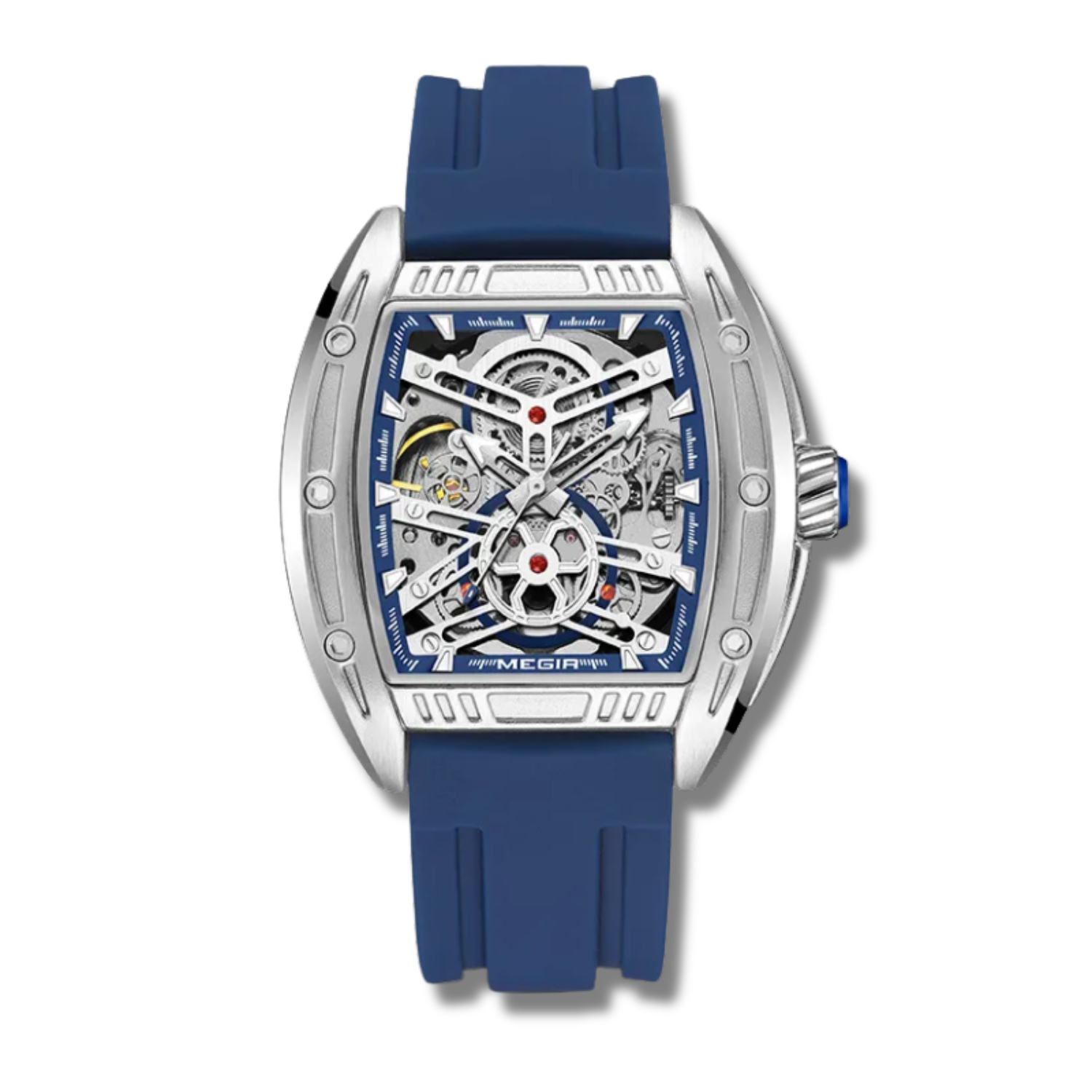 Diseñado para los que no pasan desapercibidos. El MEGIR Skeleton Sport fusiona la estética de la ingeniería mecánica con un diseño moderno y deportivo. Su carátula esqueleto muestra el intrincado funcionamiento interno del reloj, protegido por una caja de acero inoxidable pulido que refleja potencia y precisión.